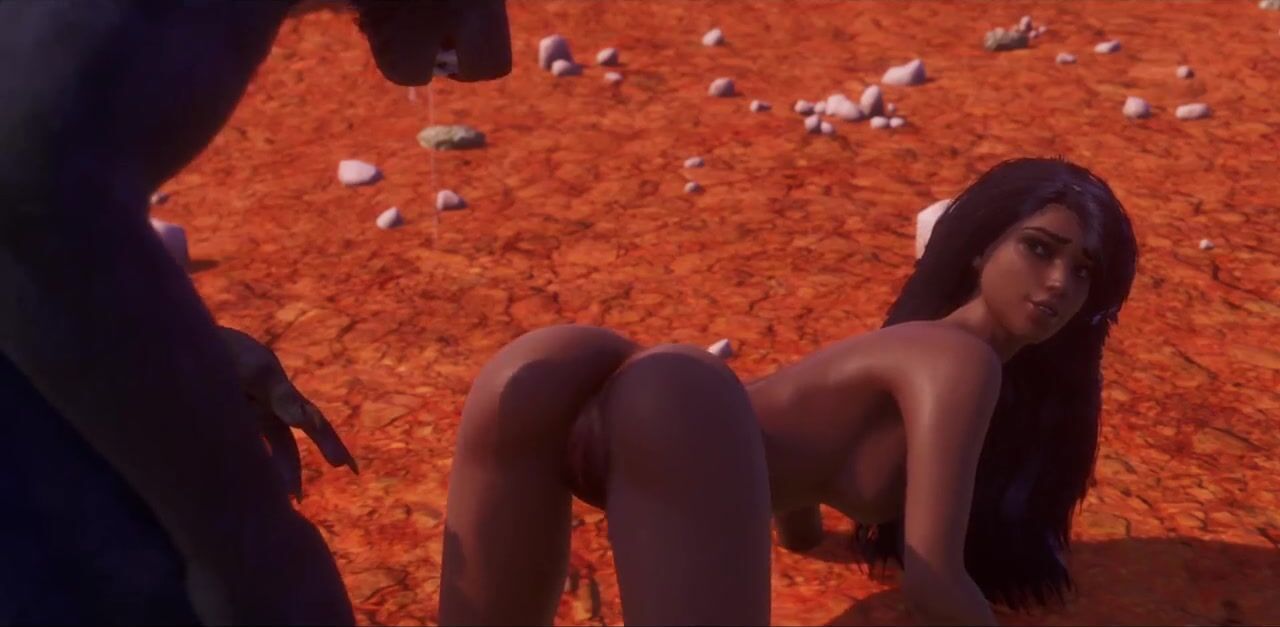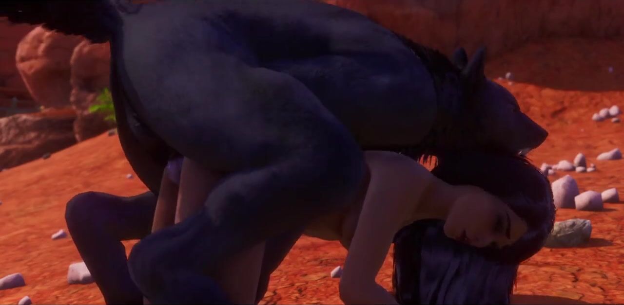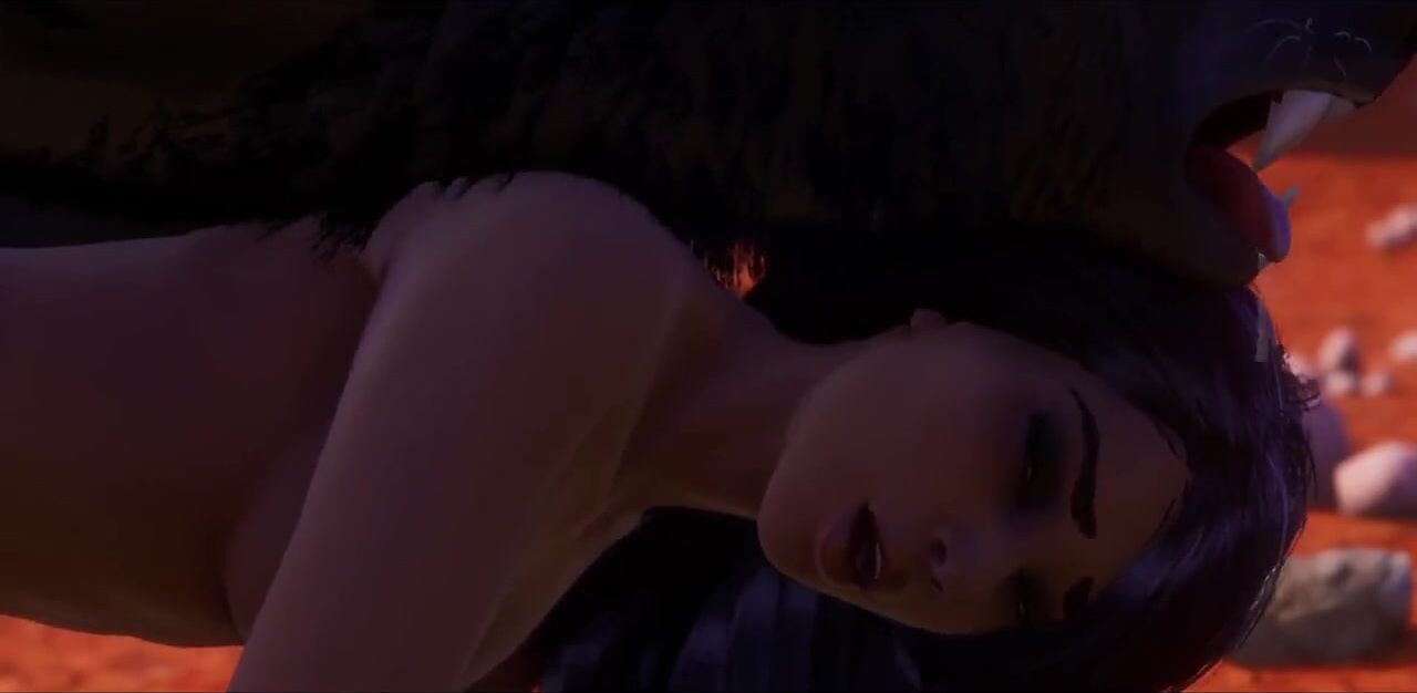 3D Werewolf Monster Breeds With Tribal Woman