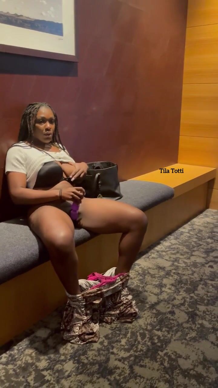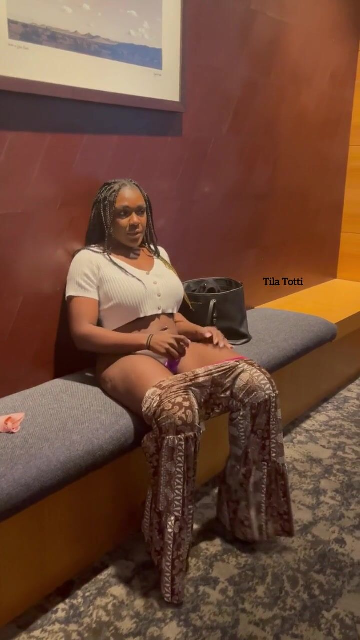 Black girl masturbating in the hotel lobby