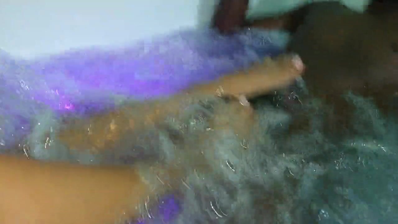 cheating wife doing footjob to a big black cock masturbating him with his feet and soles in the tub