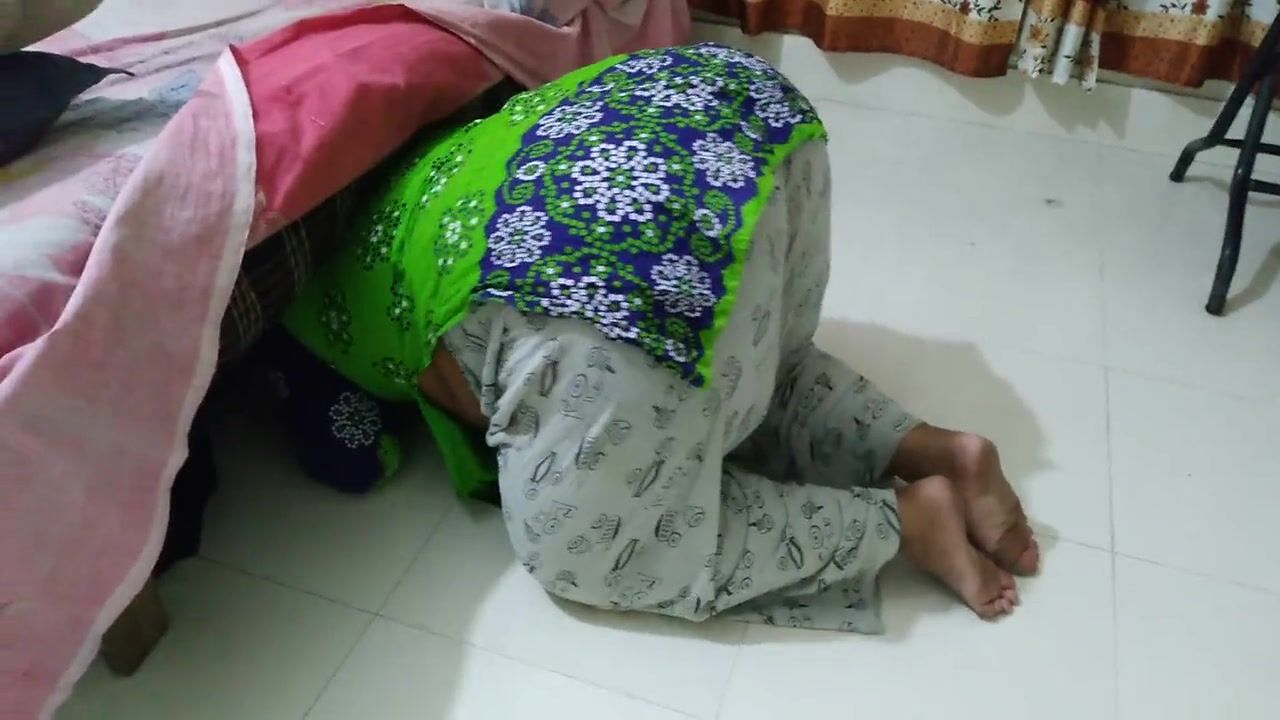Egyptian sexy stepmom with big ass gets stuck under bed while cleaning room, then neighbor comes & fucks her (huge Cum)