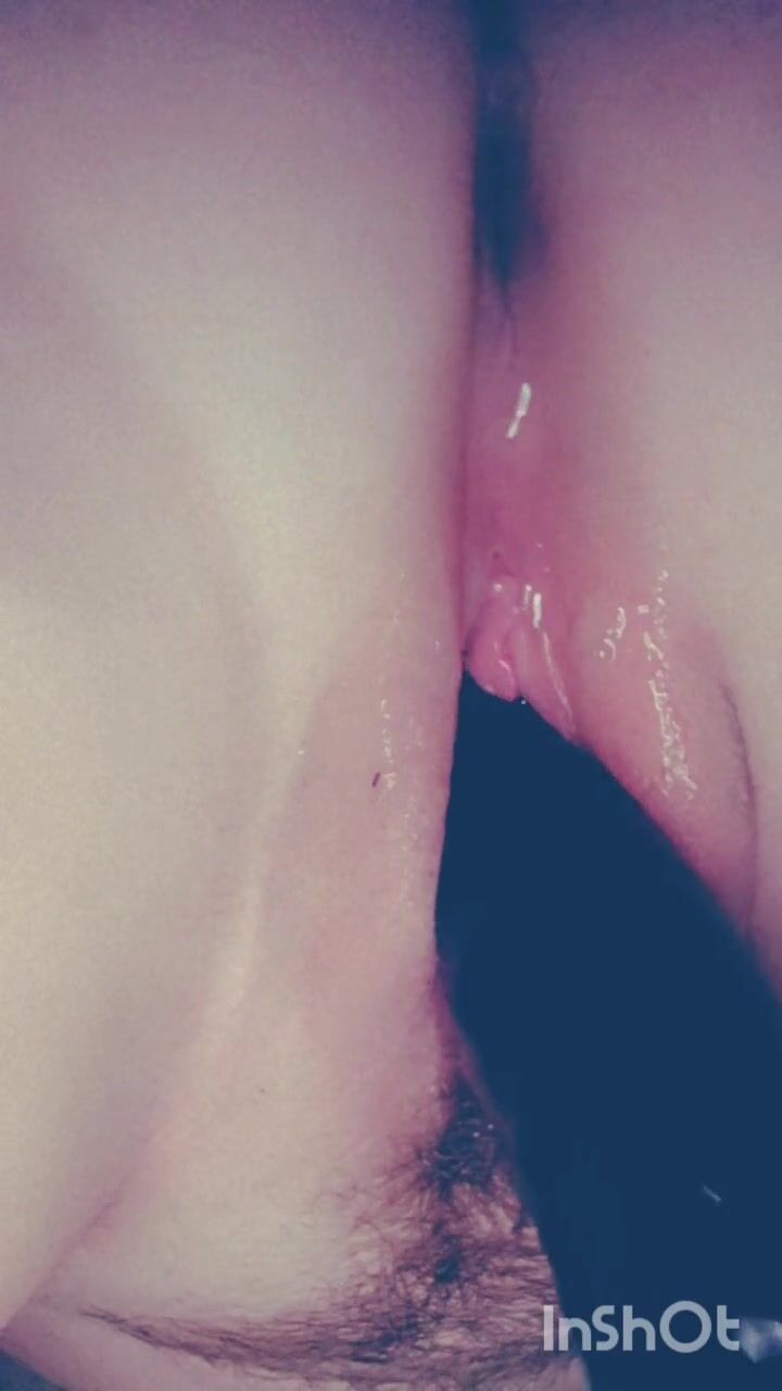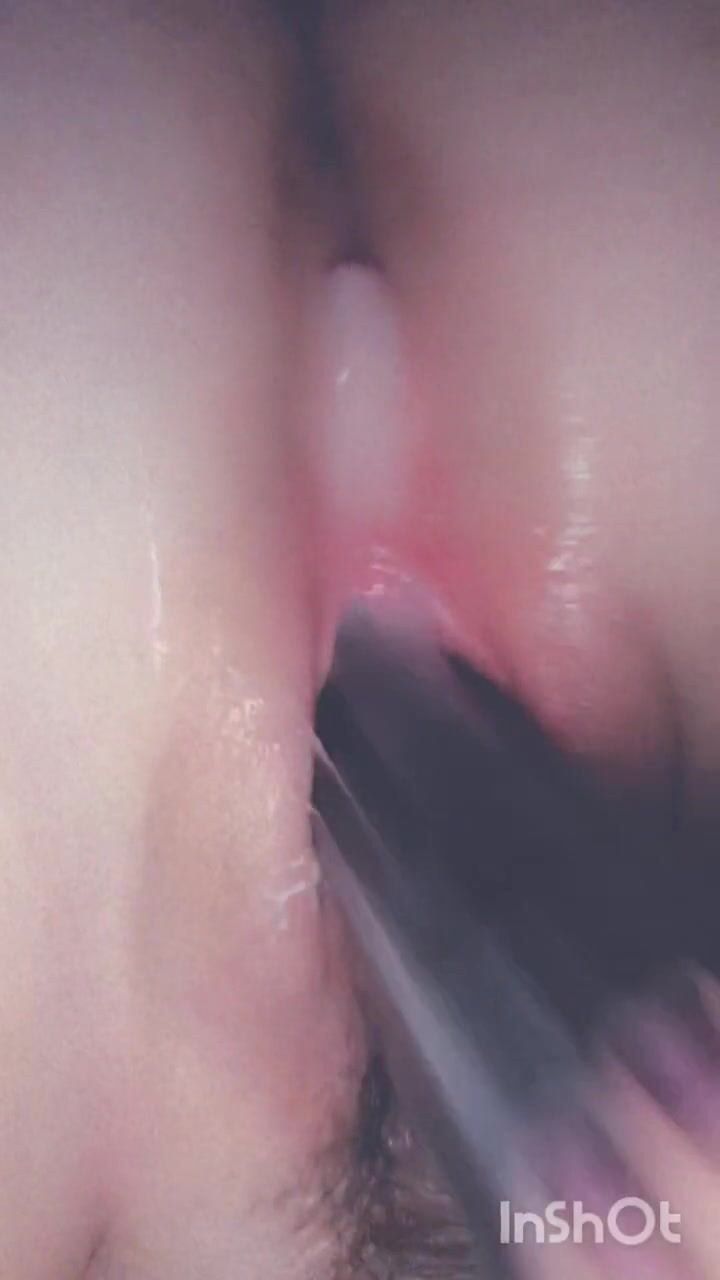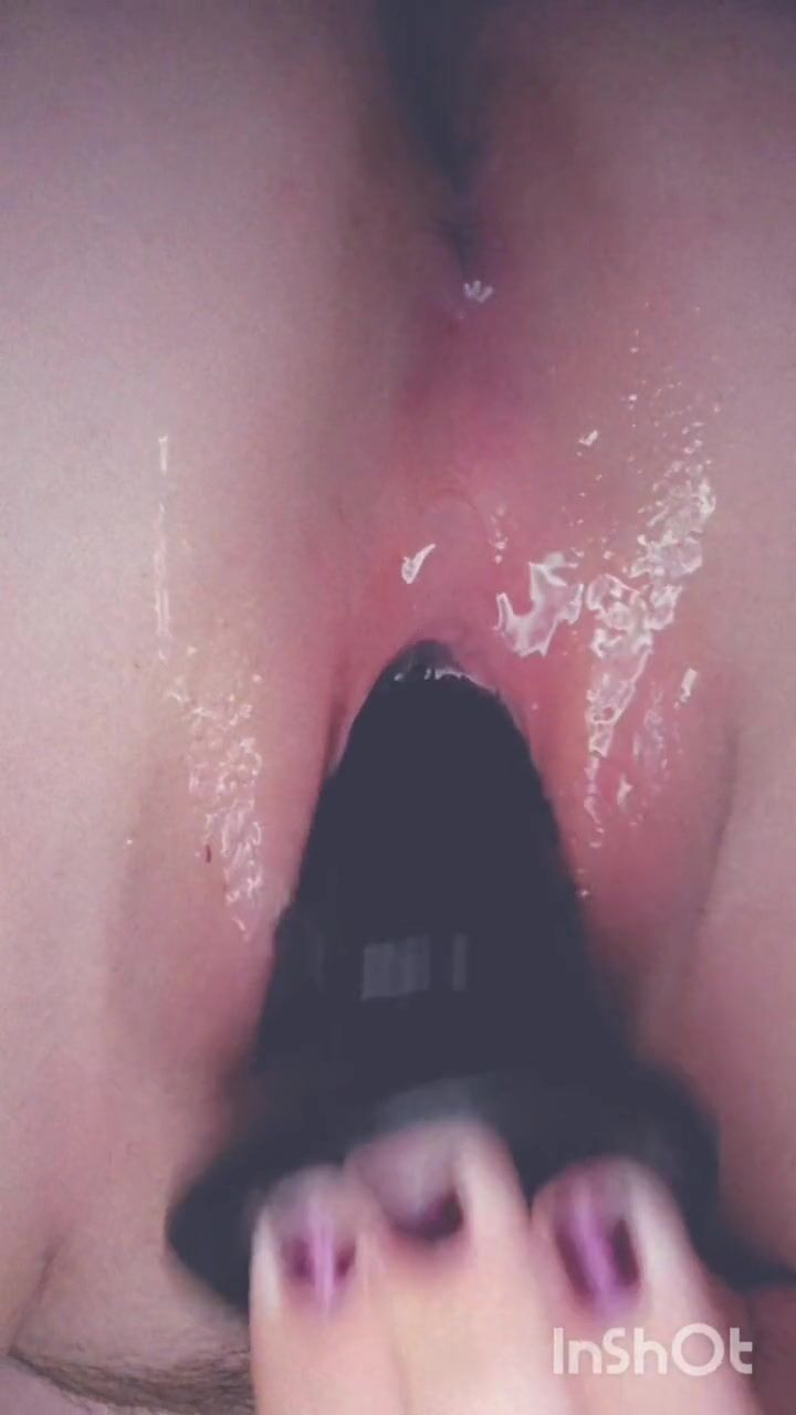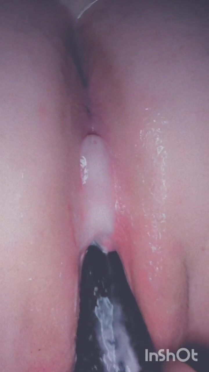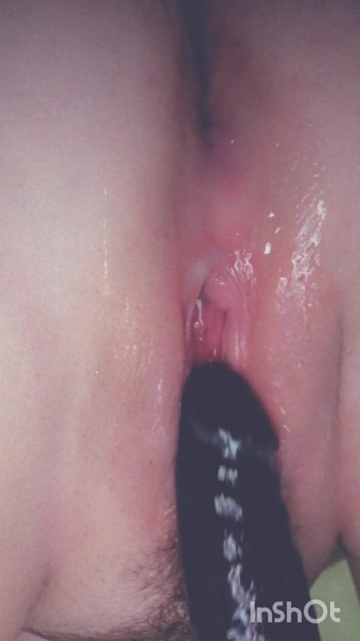 Fucking my soaking pussy with black dildo