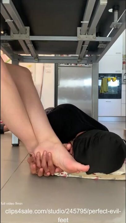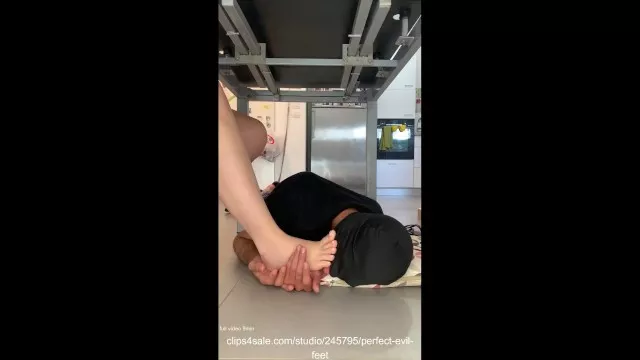 my foot slave worship my feet under table